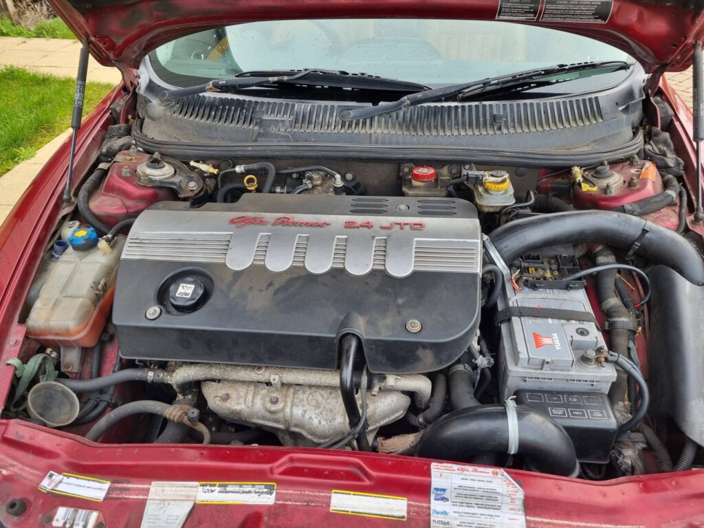 Good bits – belts were done late 2024, both driveshafts replaced last year, replaced and injector last year, clutch replaced about 4 years ago and a new master cylinder put on just last week. The car is regularly serviced and currently has fitted a ram air filter (still on original piping so can be put back if wanted) This would have been a top spec car at the time. Cd changer (currently have Bluetooth in the glovebox) Bose system with sub, HID headlights, cruise control and ISOFIX rear seats. A real rarity on the 156. Fuel economy wise I comfortably average around 600 miles to a tank. I have a selection of parts in the boot to go with the car including spare ecu, sump, roof bars, driveshafts etc.