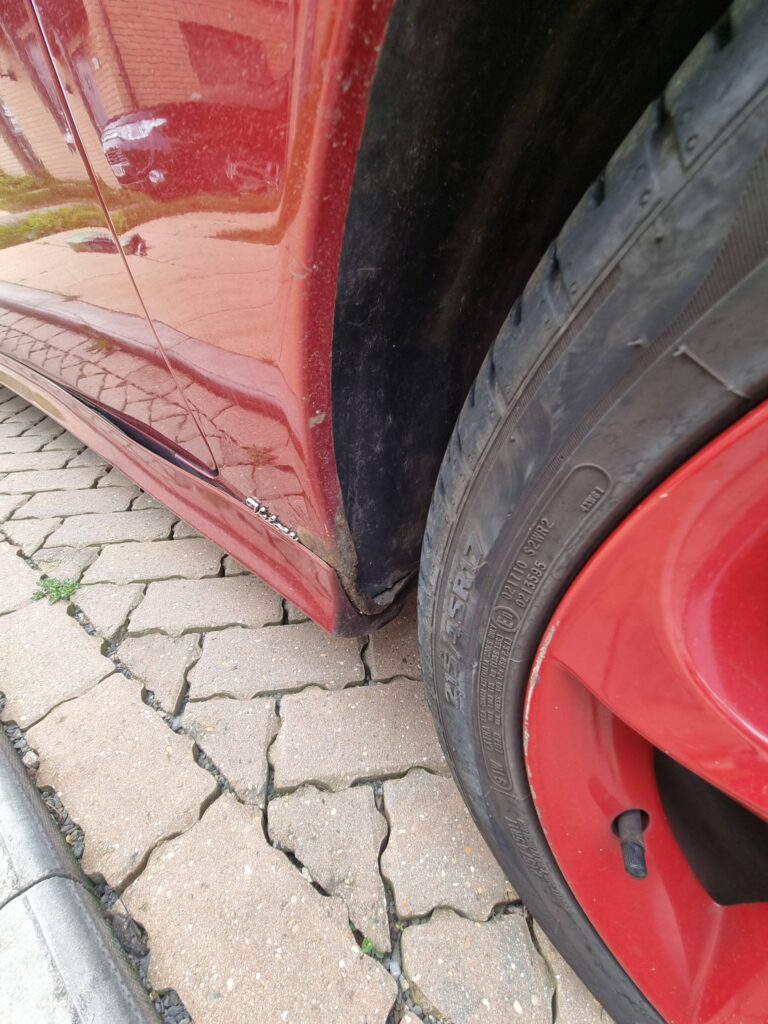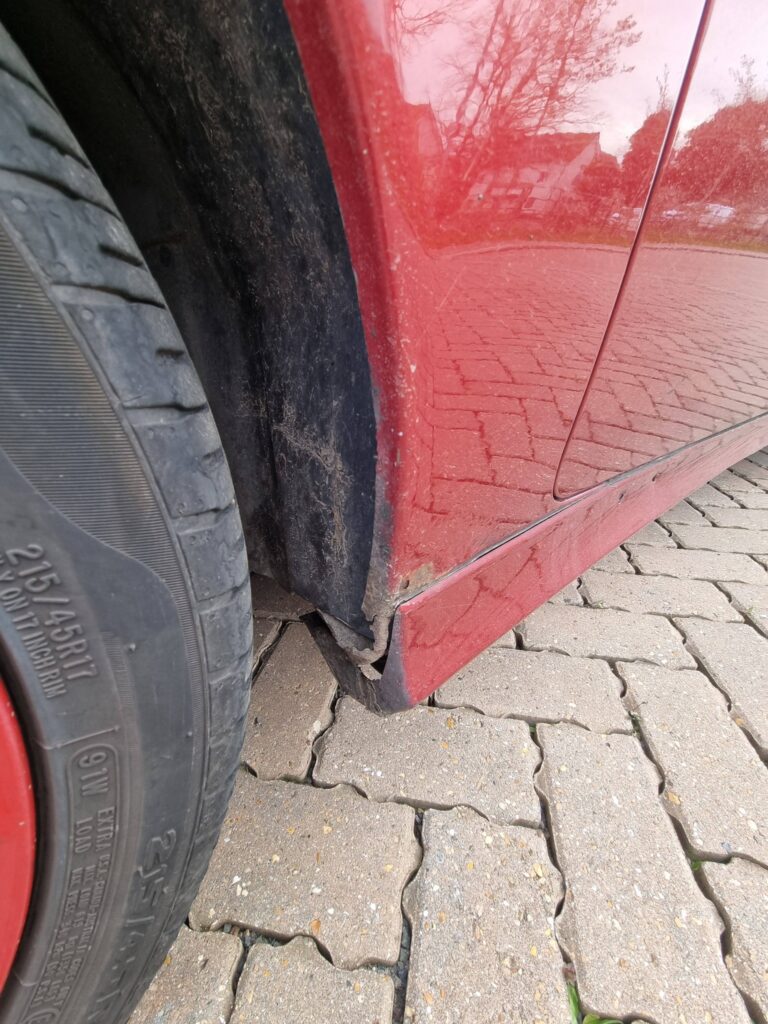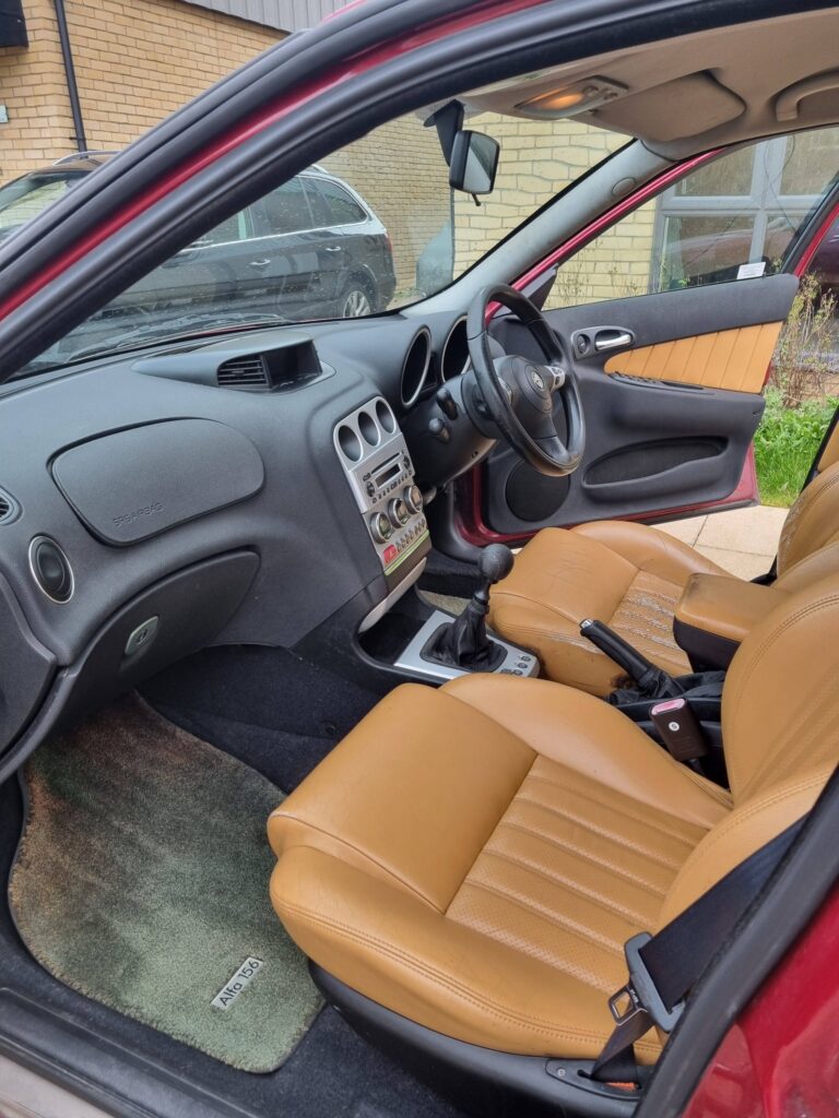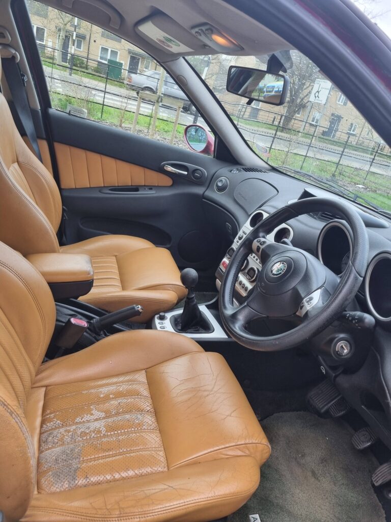 Bad bits – essentially it’s the MOT failure. Some sill welding is needed but it’s nothing major. (check photos on AROC EA site here ) Some pretty standard 156 advisories like upper wishbone ( feel free to look up reg online ) . The mileage (214k) may put some people off, but the car has been very reliable, and it’s never let me down. There is an oil leak from the sump, but the car does come with a replacement. With the car being red is does have some peel on the doors.