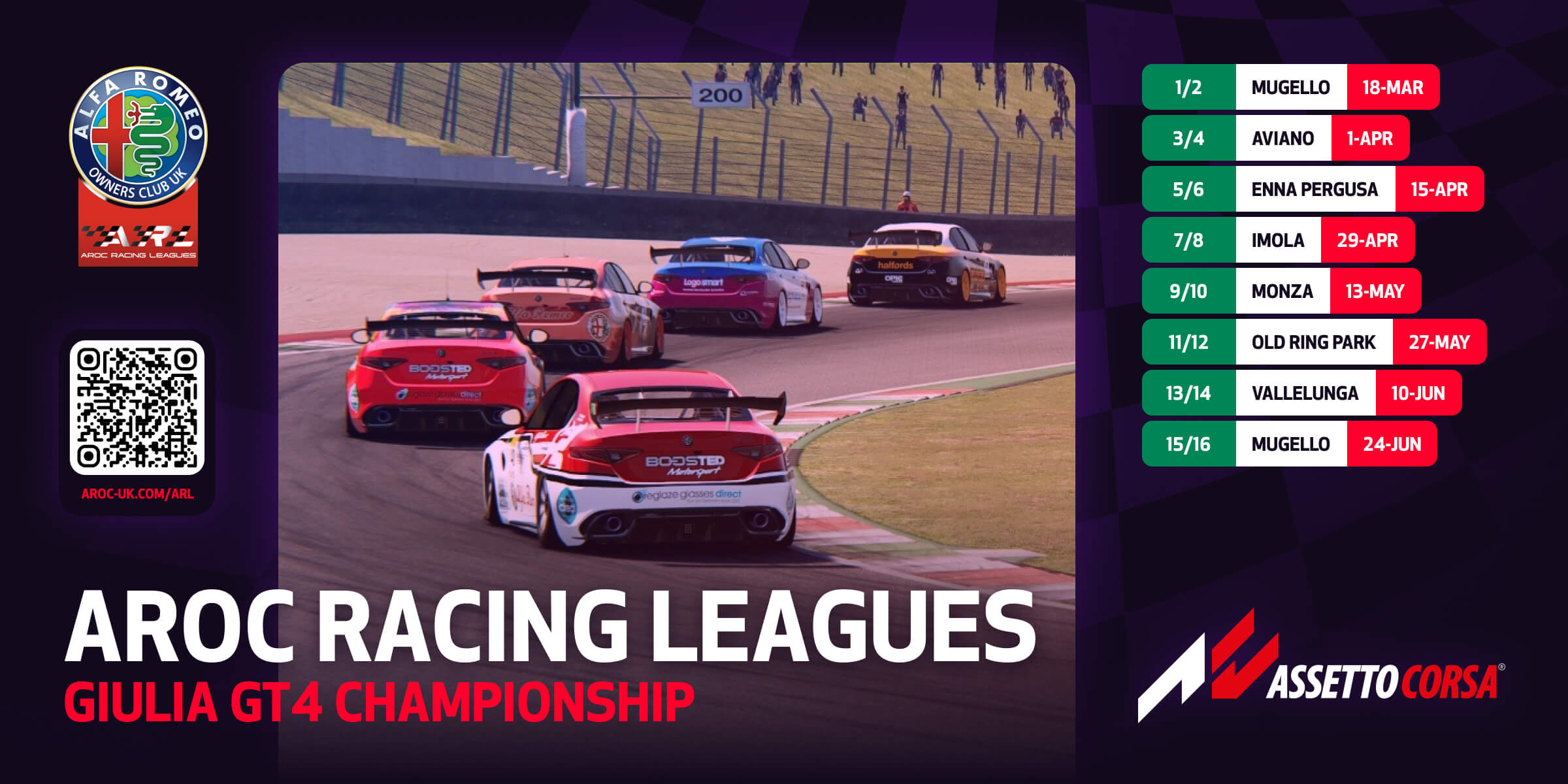 We’re excited to launch a brand‑new AROC sim‑racing series for 2026 — the Giro D’Italia Esports Series, a celebration of Italian motorsport passion, Alfa Romeo heritage, and competitive sim racing. The series will run on Assetto Corsa (PC – Steam) and is open to all AROC members and invited guests.