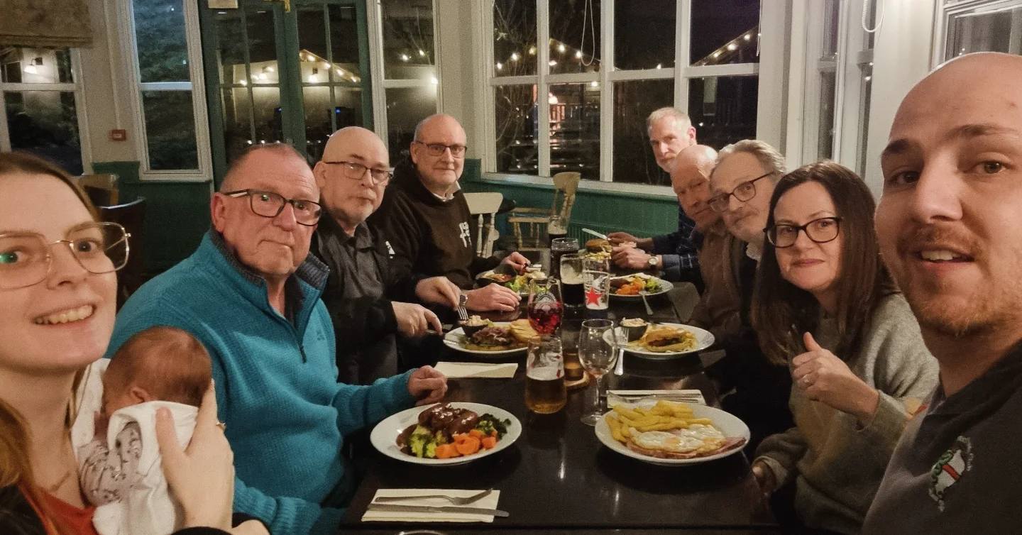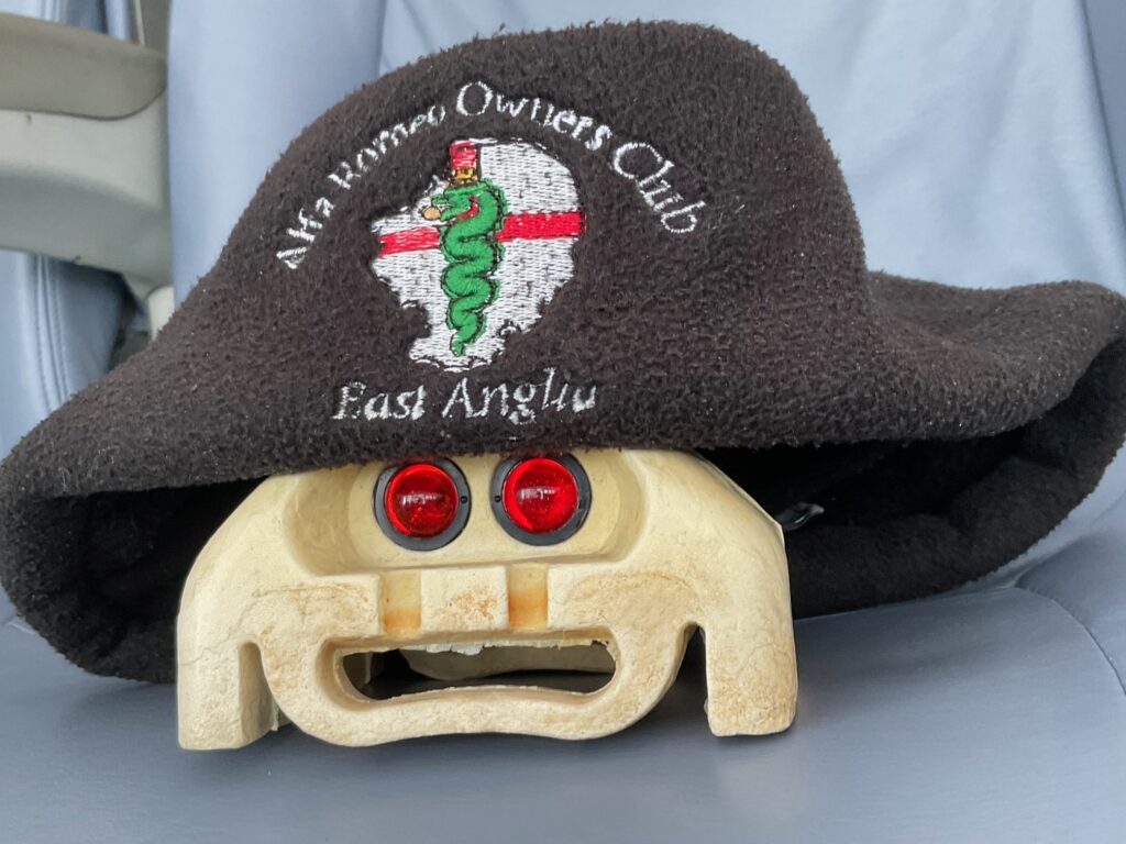 Februarys meet at The Greyhound was a great evening, we may have set a record too, for the largest age gap between attendees. Its was lovely Peters 80th birthday on the day, (but he’d pass for late 60’s), and newest edition to the section, Patsy, was celebrating her 9th day on this big planet! Patsy was wearing an Alfa Romeo branded grow bag (do they still call them that or is it a onesie or a boiler suit?) Talking of branded wear, see below! Topics covered were as varied as ever, including this friendly little face and how clever they are. See photo attached, courtesy of the birthday boy Peter. Only negative was some vicious potholes in the village which damaged at least two Alfa rims.