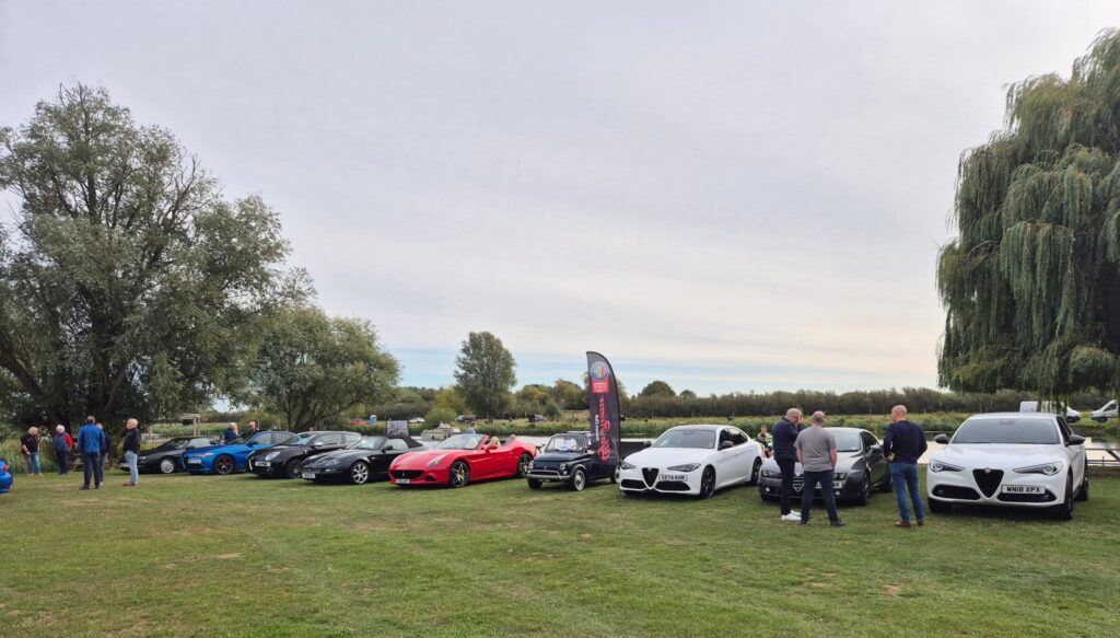 This was an ‘easy like Sunday morning’ relaxed meet up with AROC East Anglia section and other owners and clubs for their Italian Cars and Coffee event at the pretty Pike & Eel pub and Marina at Needingworth near St Ives. The pub was next to the Pike and Eel Boat Club and marina on the banks of the river Great Ouse, a beautiful location with great atmosphere and views. It’s was a free event and people could enjoy tea, coffee, drinks and a bacon or sausage bap from the pub while enjoying the cars and social chats with other club members and owners.