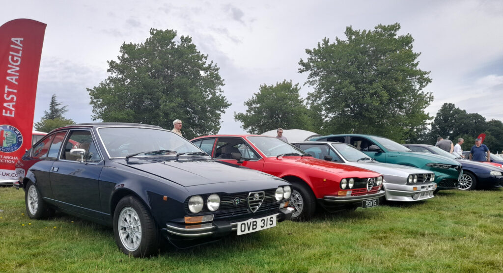 At the beginning of August it was the largest event of our year. Helmingham Hall festival of Classic and Sports Cars which was another great success, we lost a few cars on the day due to various problems but still had 32 on the stand. We saw plenty of old and new faces and talked a lot! We had the full current range of Alfas in a line, the Junior got a lot of interest too! Probably as much as the 037/Stratos/Fulvia we had at the other end of the club stand. We have a cross over with the Lancia guys, with some section members owning Alfas and Lancias, and as we are the most proactive of the two it made sense to have them join us, sadly the Integrale was one of the losses on the day.