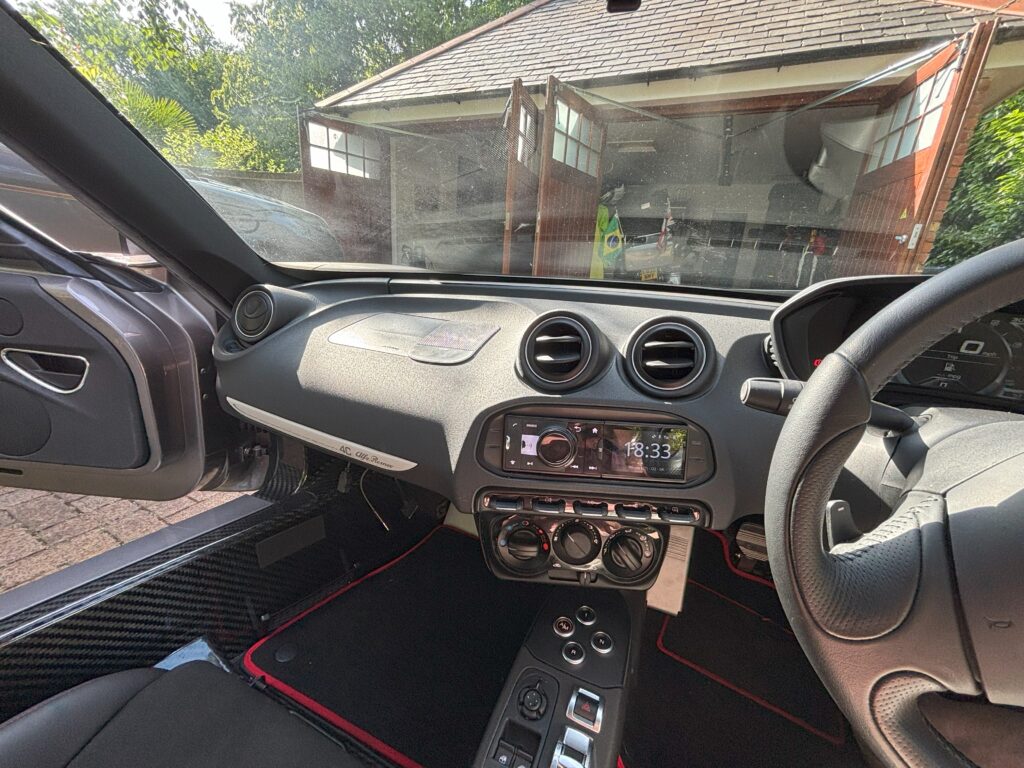 FSH. Tax only £195. Recent cambelt, water pump and bolt tightening service. Massive spec includes expensive carbon fibre side inlet, carbon mirror caps, carbon air vents, leather dash, leather/Alcantara seats, storage compartment between seats, race exhaust, ‘Spider’ headlights, 18/19″ alloys, red brake callipers, full PPF. Totally immaculate inside and out. Scuff-free cills and door cards, never driven in the rain and always garaged, never raced or tracked. Includes 4C indoor fitted car cover.